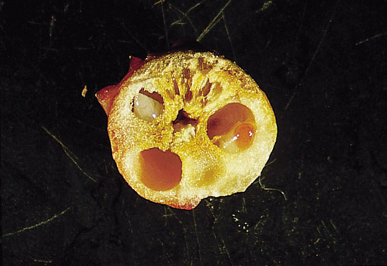,上方具數個突刺。屬多室蟲癭, 每室含一隻膜翅目(
