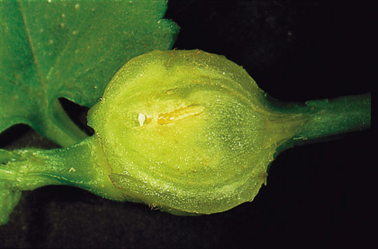 。蟲室位於中央,含一隻雙翅目癭蚋科(