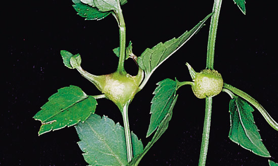 型圓球狀蟲癭。癭體綠色, 直徑約