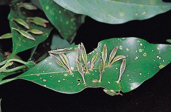 單一葉片上可著生近20個蟲癭。蟲室縱向,