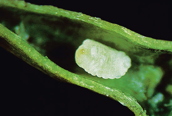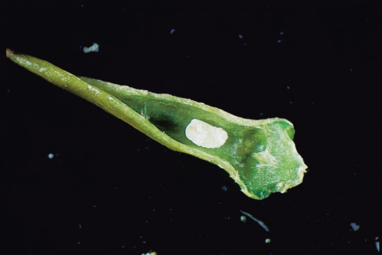 ,光滑呈綠色,具圓盤基座。 癭壁薄,有一隻雙翅目癭蚋科(