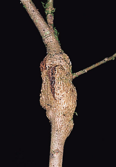 由枝條形變膨大成隆突狀蟲癭。造癭者待鑑定。