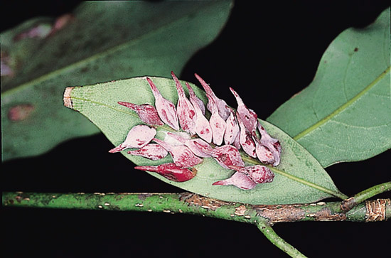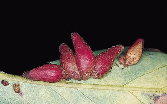 鼠狀蟲癭、紡綞狀蟲癭(I)、圓錐狀蟲癭、紡綞狀蟲癭(II)、桃狀蟲癭。