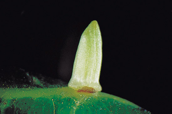 蟲室位於癭體中央,四周具有放射狀組織,內含一隻膜翅目(Hymenoptera)幼蟲。