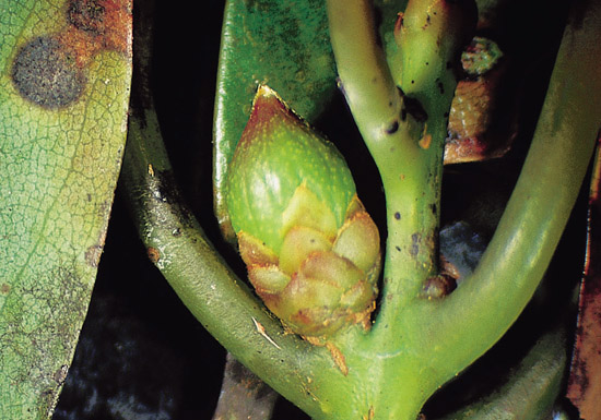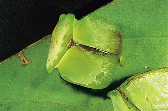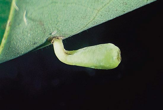 發生於葉背,癭體光滑呈蒼綠色,長約12mm,寬約9mm,