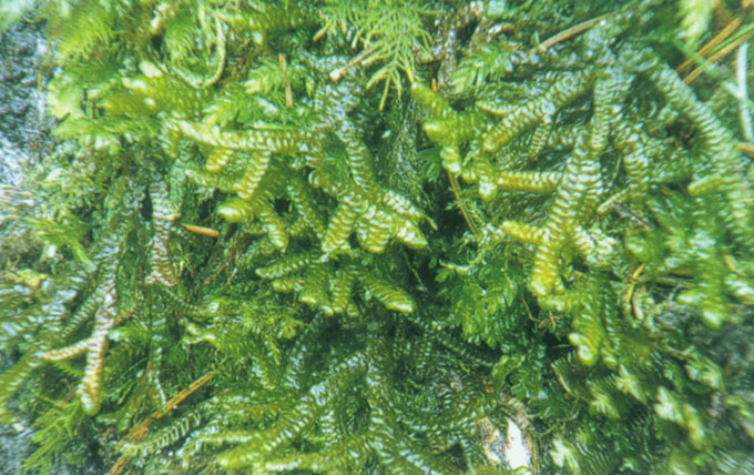 植物體中型至大型,硬質,不具光澤,乾標本上部黃綠色或棕綠色,下方黃棕色,密集群生於樹皮或樹基上;莖紅棕色,5∼10(∼12)cm長,0.3mm直徑,羽狀分枝或多少二回羽狀分枝,初生枝達3cm長。莖葉密覆瓦狀,背片傾立,明顯橫生,凹,先端強內捲,平展時呈橢圓形,1.2∼1.3mm長,1∼1.1mm寬,先端廣圓頭,基部常具波浪狀皺縮,全緣或1∼2齒之小附屬物;腹片斜開展,大形,大多平坦,卵形,0.8mm長,0.6mm寬。背片邊緣細胞15∼20×12∼15μm,中央細胞25∼30×20μm,基部細胞30∼40×20μm,壁薄,三角隅中型至大型,三角狀,在基部略呈結瘤狀。莖腹葉較腹片小或近乎等大,沿邊緣強背捲,卵形或亞方形或亞三角狀卵形,0.6∼0.7(∼0.9)mm長,0.6∼0.7(∼1)mm寬,基部長下延,形成一葉角區,呈皺縮撕裂狀,為腹葉片長之一半或一半以上。嘉義塔山口,塔塔加,兒玉山,前山,排雲山莊,玉山,高雄南橫143K;舊世界溫帶型。