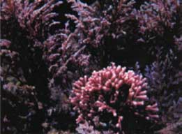 藻體直立,外觀通常呈半球形叢塊,或者較為散亂,其附著器不明顯,高度可達約8∼14cm高,色澤呈瑰紅色至稻草色或乳紅色,高度鈣化。枝條圓柱狀,呈叉狀分枝,直徑約0.5∼2.5mm,表面平滑無毛,分叉處無鈣化。多軸型生長模式。枝節的基部稍呈細狹。髓細胞鬆散,皮質由3-4層細胞組成,最內層為寬卵形,直徑約40∼55μm,無色。表面細胞相當扁平,直徑約8∼15μm,重度鈣化。其藻體經過去鈣化後的外層皮質細胞易剝解,此點與乳節藻不同,乳節藻屬的成員經去鈣化後,其外層皮質細胞仍黏附著。 |