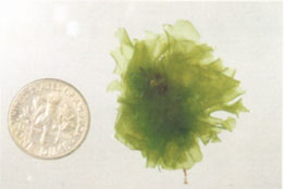 藻體膜葉狀,色澤呈草綠色,因彼此交互折疊而類似高茸狀或牡丹花,故而得其名。葉之高度約3∼4cm,整體呈圓形,其厚度為33∼50μm。基部細胞較上層細胞硬。 |