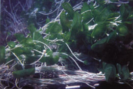 藻體直立,外觀似傘,乃由一個柄支持頂端的傘狀體,色澤為鮮綠色;其柄呈鈣化,白色,高度可達10cm以上,其直徑約400∼650μm。傘狀體平坦稍呈淺盤狀或皺起向上往內灣,其直徑約1∼2.5mm,由54∼59個配子囊輻射枝組成,每一個5∼7mm長,其側邊彼此相互連結。藻體通常成群生長,然數量並不多。曾於近楓港前的海岸發現大量的群體。 |