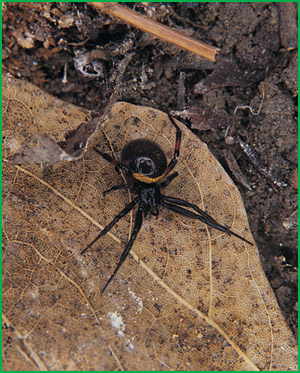 黑褐色,第I、II步足的腿節和脛節中部為褐色。雄蛛體長約5~6 mm,體色和斑紋大致上與雌蛛同。 【習性】 【分布】 |