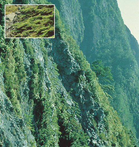 生態/分布:臺灣僅產於花蓮清水山及太魯閣之石灰岩及砂岩之石礫地,亦屬稀有植物,但大陸東北、日本、蘇俄亦有分佈。 用途/解說:清水山檜除供觀賞外,枝葉舖地,有水土保持功效。 |