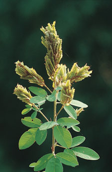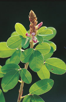 俗名:稗豆,柏民小槐花,狗尾花。 形態特徵:灌木,幼枝被疏長柔毛。小葉三枚,橢圓形至闊倒卵形,長2.5∼6 ㎝,寬1.3∼ 2.5㎝,裡面被白色長柔毛。圓錐花序腋生;花成對著生,花紫色,長約5㎜。果線形,長1.2∼2.5㎝,腹縫線直,背縫線波狀,具4∼9莢節。 生態/分布:產華南、日本、中南半島、印度及菲律賓,臺灣產於低海拔開曠地。 用途/解說:全株入藥,味甘微苦,性平,清熱,治跌打,消腫等。 |